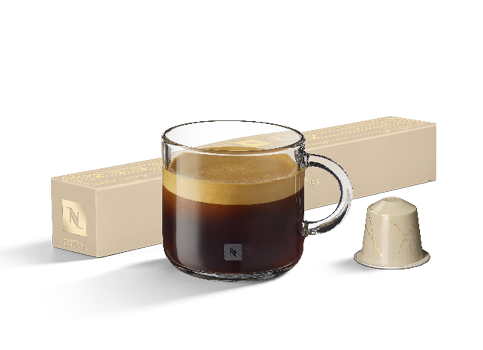 חלטו את קפסולת קרואסון שקדים ישירות אל תוך הכוס, הורידו קצת קרמה במידת הצורך.