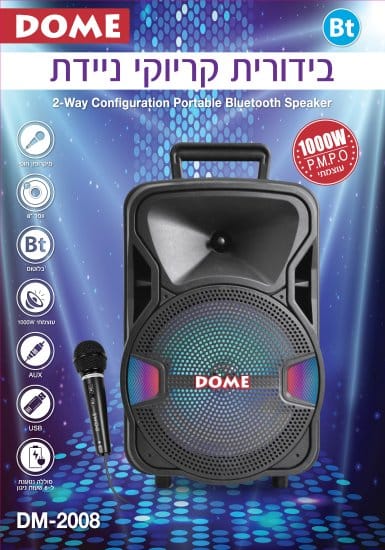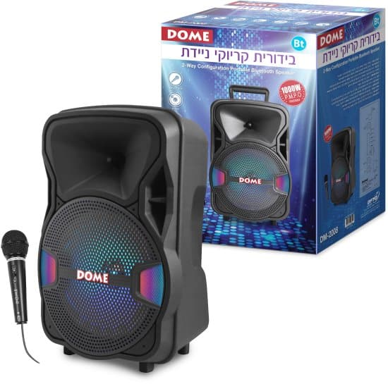 בידורית קריוקי ניידת עם מיקרופון חוטי ותאורת דיסקו לד Dome DM-2008 1000W