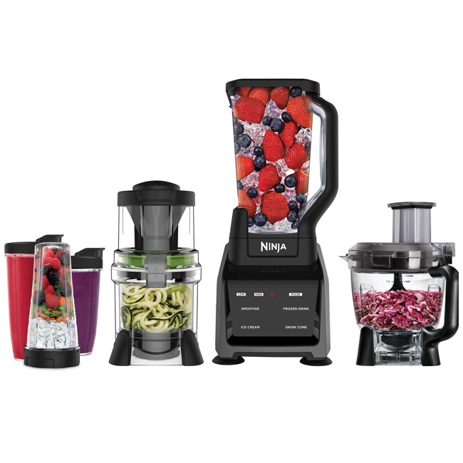 מעבד מזון נינג’ה משולב עם בלנדר שייקר וספירולייזר מקצועיים לעיבוד מזון ולהכנת משקאות ושייקים בריאים, ממרחים ורטבים, מחיות לתינוקות ואוכל בריא לכל המשפחה.