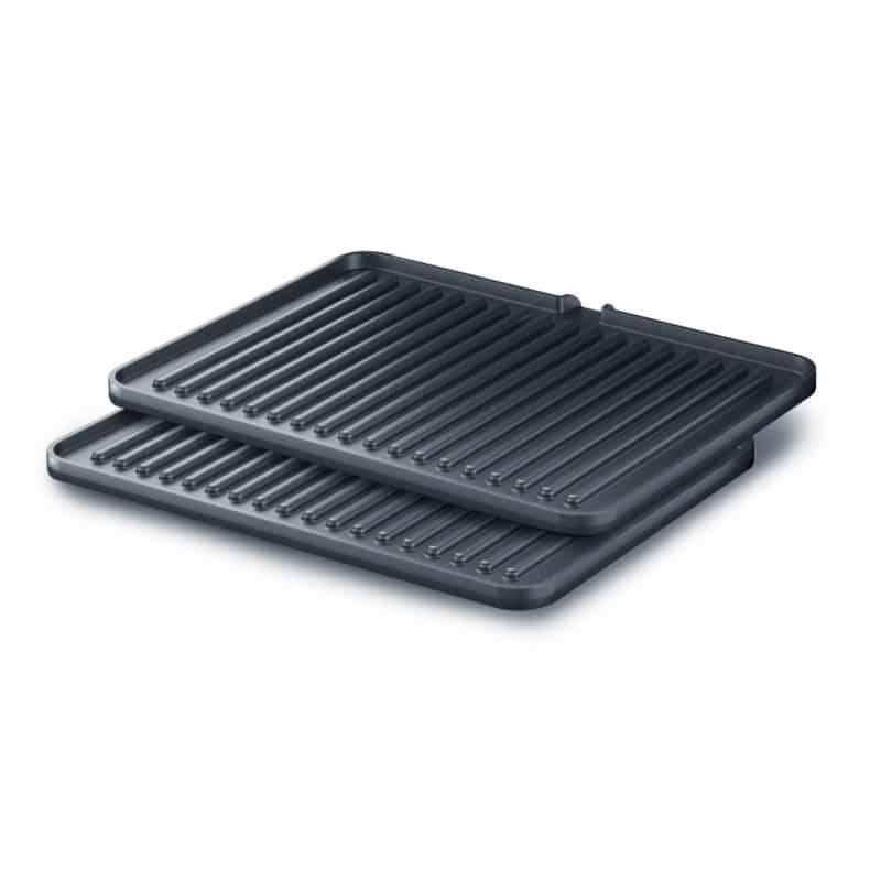 זוג פלטות גריל העשויות NON-STICK הנשלפות לניקוי בלחיצת כפתור.