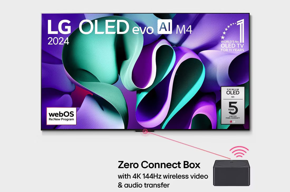 טלוויזיית OLED TV אלחוטית לחלוטין הראשונה מסוגה בעולם עם העברת וידאו ושמע אלחוטית ברזולוציה 4K וקצב רענון של 144Hz