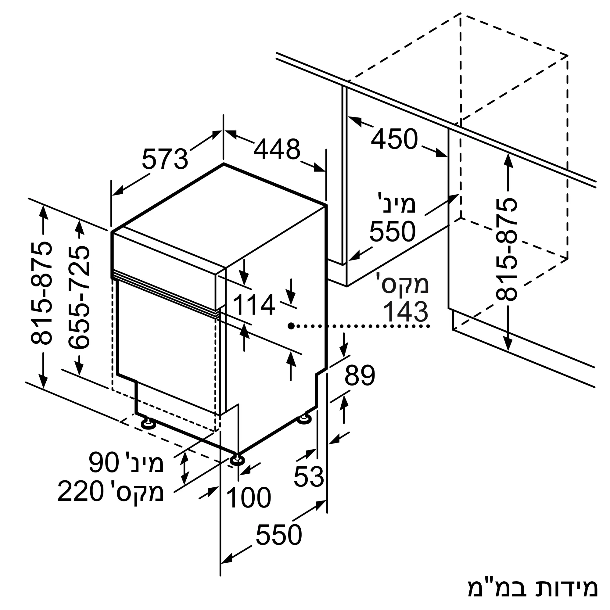 מדיח כלים חצי אינטגרלי 45 ס”מ Bosch בוש סדרה 2 דגם – SPI2HKS42E דמוי נירוסטה