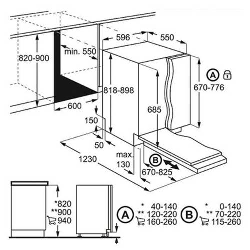 מידות המדיח (עxרxג) במ”מ: 818-898 × 596 × 550