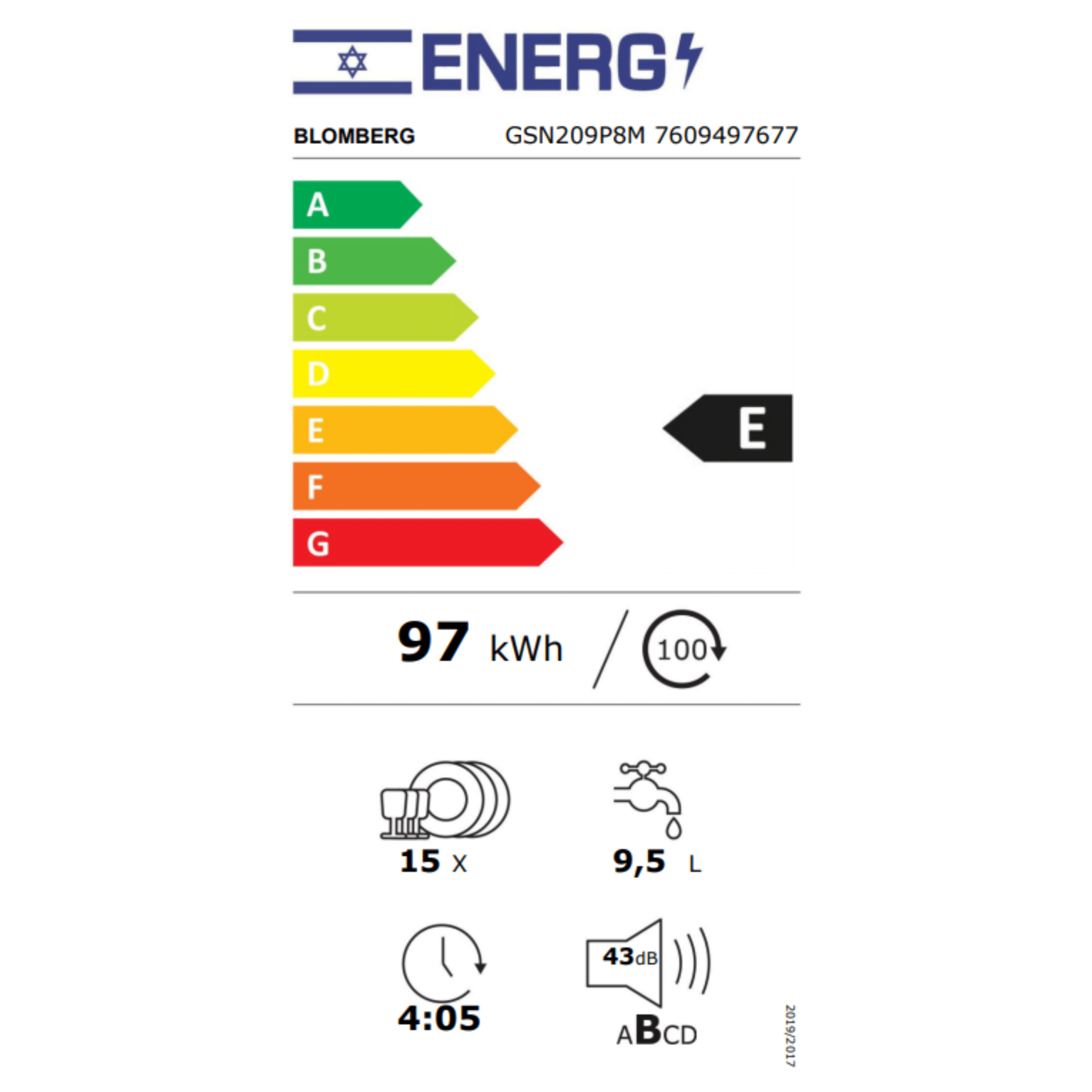 מדיח כלים 14 מערכות כלים Blomberg GSN209P8M - גימור אפור כהה אחריות ע"י היבואן הרשמי
