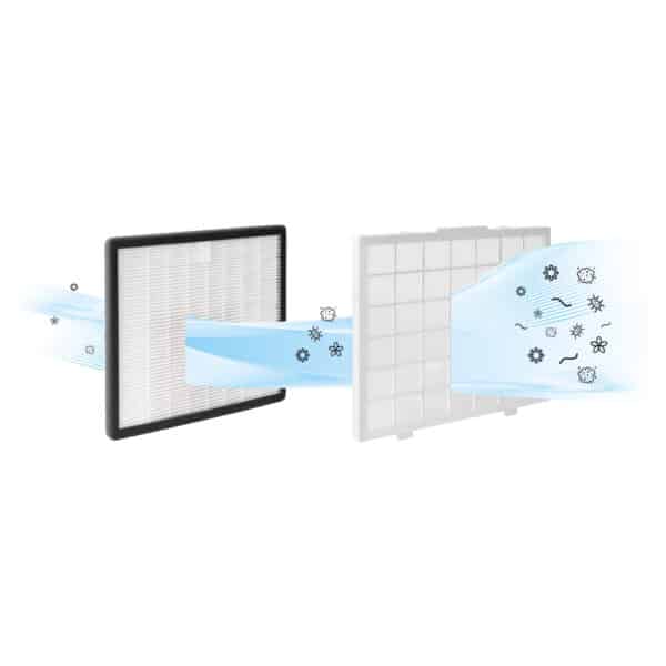 • מערכת סינון HEPA 13 + ניילון – לוכדת ‎99.97%‎ מהחלקיקים ומפחיתה אלרגנים וריחות