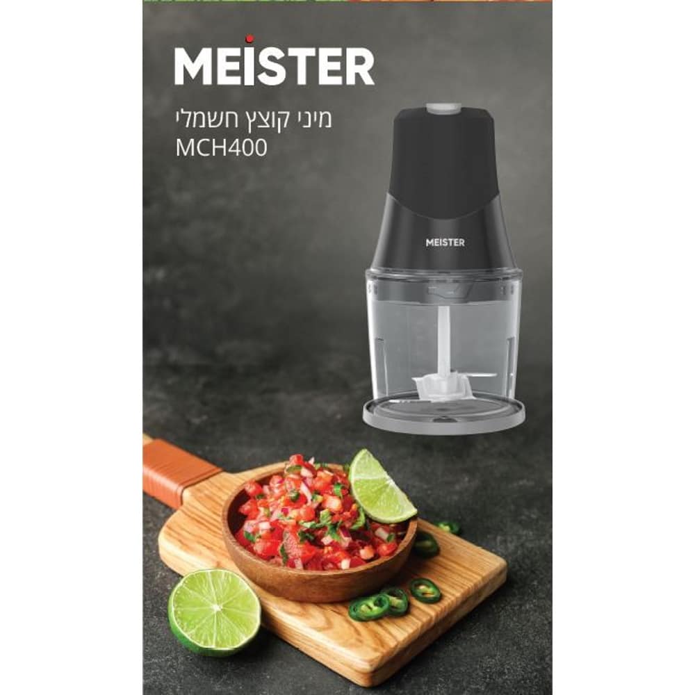 קוצץ המזון החשמלי Meister MCH400 הוא פתרון מושלם להכנות מהירות ויעילות במטבח. אידאלי לקיצוץ ירקות, עשבי תיבול, בצל, שום, אגוזים ואפילו הכנת רטבים וממרחים – בלחיצה אחת בלבד.