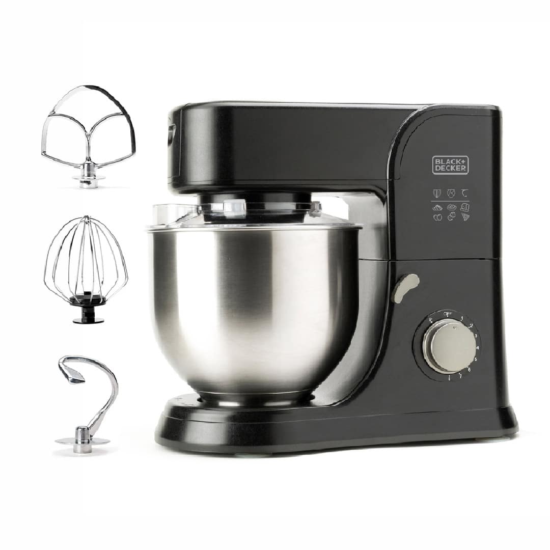 מיקסר שולחני מקצועי עם קערה 5.2 ליטר 1000W Stainless Steel שחור בלאק אנד דקר BLACK AND DECKER דגם BXKM1001E