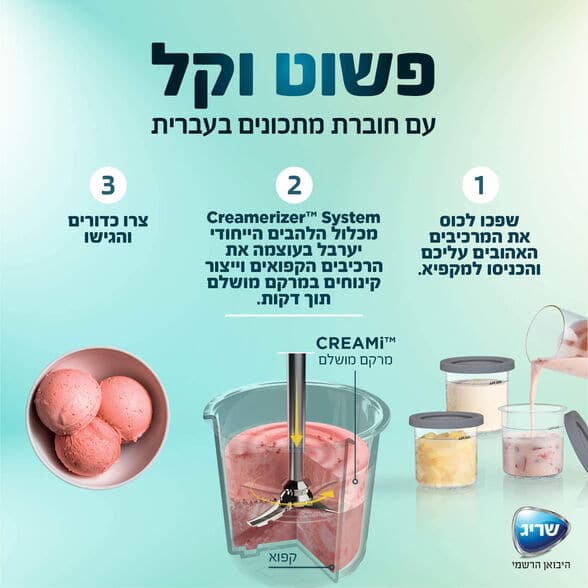 עם טכנולוגיית ה-Creamify™ יערבל את המרכיבים וייצור עבורכם פינוקים כמו שאתם אוהביםבמרקמים