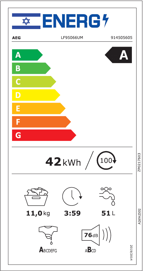 מכונת כביסה פתח חזית 11 ק”ג AEG א.א.ג דגם – LF95066UM