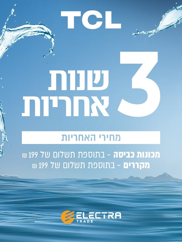 • שנת אחריות מלאה + 6 שנים על המדחס (בתוספת 99 ש”ח)