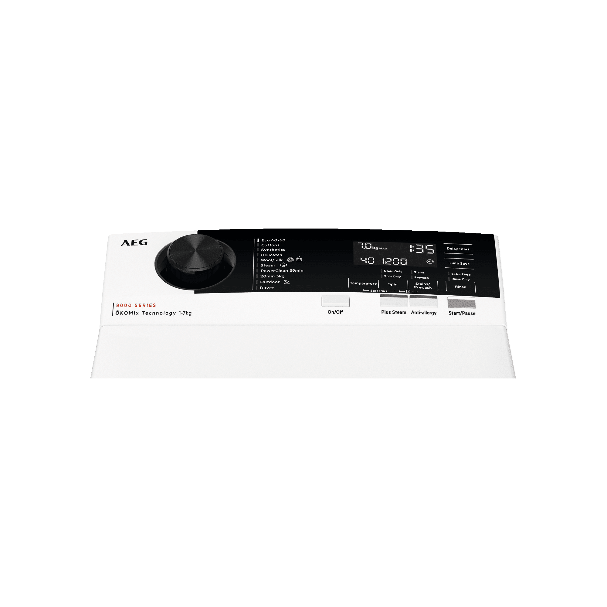 40-60 ECO, כותנה, סינתטי, עדינים, צמר /משי ידנית, קיטור, אנטי אלרגיה, שמיכות, בגדי חוץ, מהירה 20 דקות 3 ק”ג, PowerClean 59min