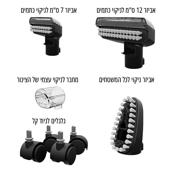 גלגלים להזזת המכונה בקלות בזמן הניקוי.