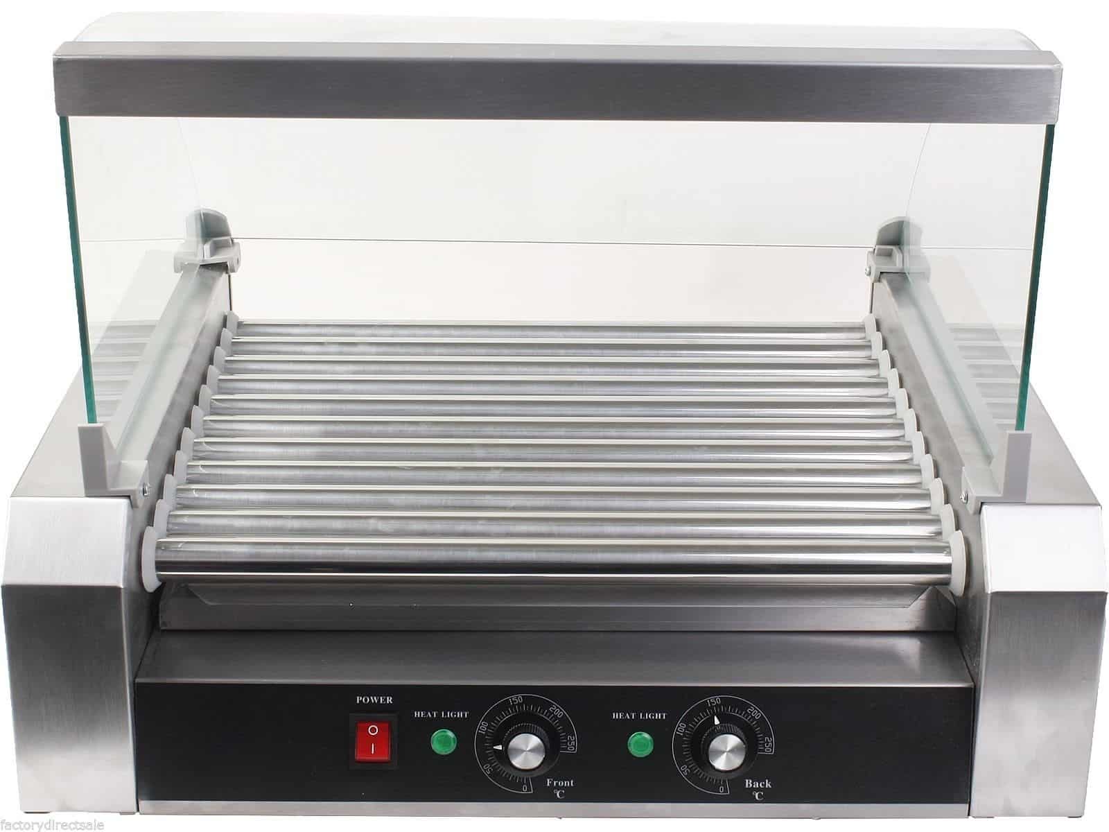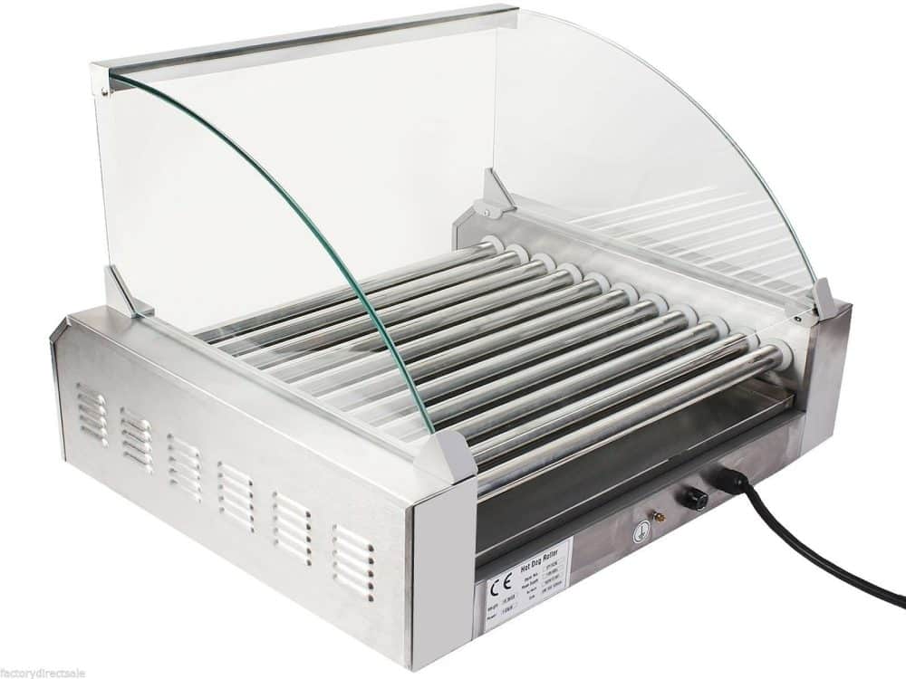 מכונה מקצועית לבישול נקניקיות, עשויה נירוסטה איכותית עם זכוכית הגנה לשמירה על איכות המזון והגנה על הצרכנים.