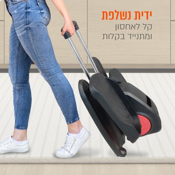 פרקטי- תופס מעט מקום וניתן לאחסן אותו בקלות בסיום כל אימון ומתנייד בקלות על ידי ידית נשלפת
