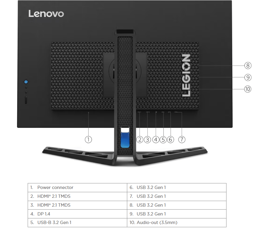 צג Lenovo Y27QF-30 כולל מגוון רחב של קישוריות.