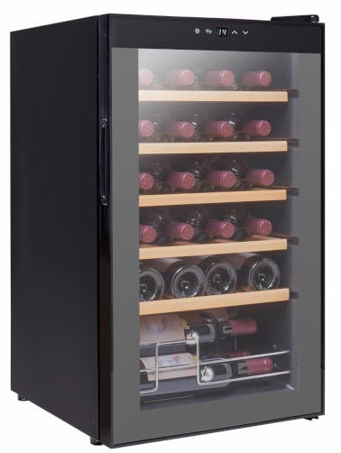 מקרר ביתי מבית Vinopo, עם קיבולת בינונית של עד 24 בקבוקים ומדפים מעץ, עיצוב מהודר ומערכת הפעלה חדישה וקלה לתפעול, מקרר יין הנאה צרופה מאוסף היין שלכם. בעל מערכת בקרת טמפרטורה נוחה לשימוש בחזית הדלת, מדפי רשת, זכוכית כפולה עם הגנת UV ועוד.