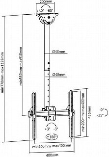 מתקן תקרתי טלסקופי לטלוויזיה EAZO PRO400CS