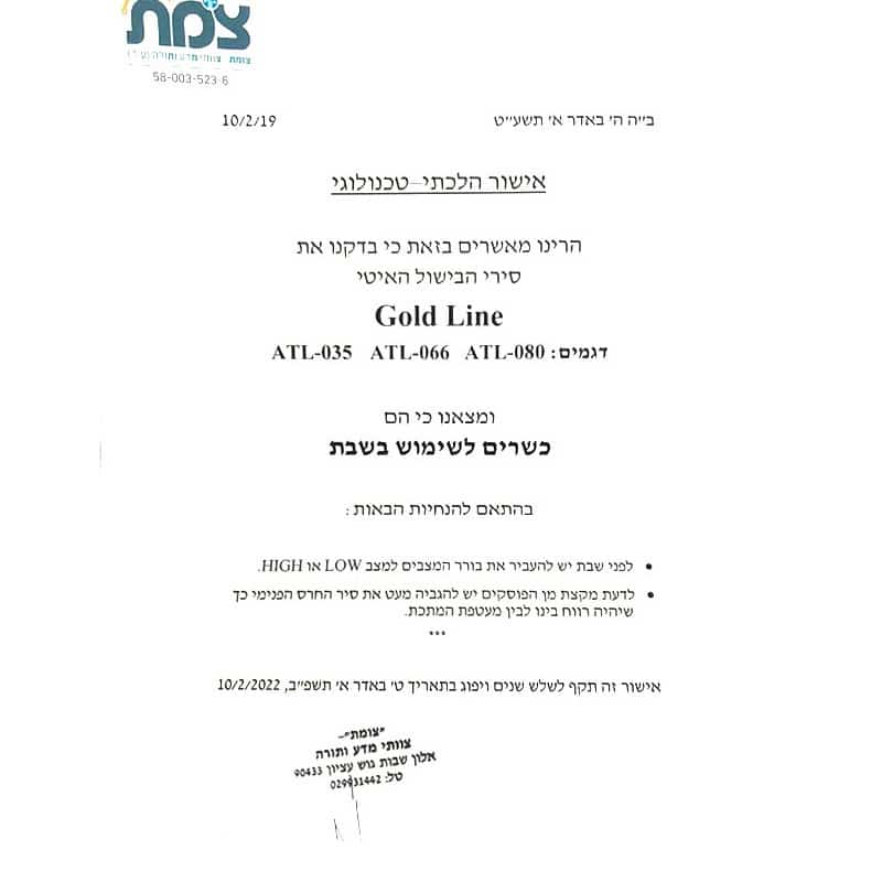 הסיר מאושר לשימוש בשבת ע”י מכון צ.מ.ת אישור מצורף