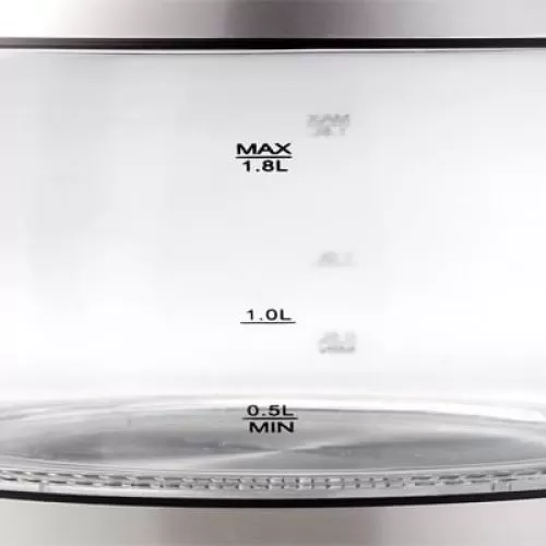 קומקום זכוכית בקיבולת גבוהה של 1.8 ליטר עם אחיזה נוחה, מדיד מים וגוף חימום נסתר