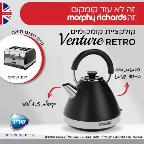 קומקום חשמלי 1.5 ליטר VENTURE מורפי ריצ`ארדס MORPHY RICHARDS דגם 100131