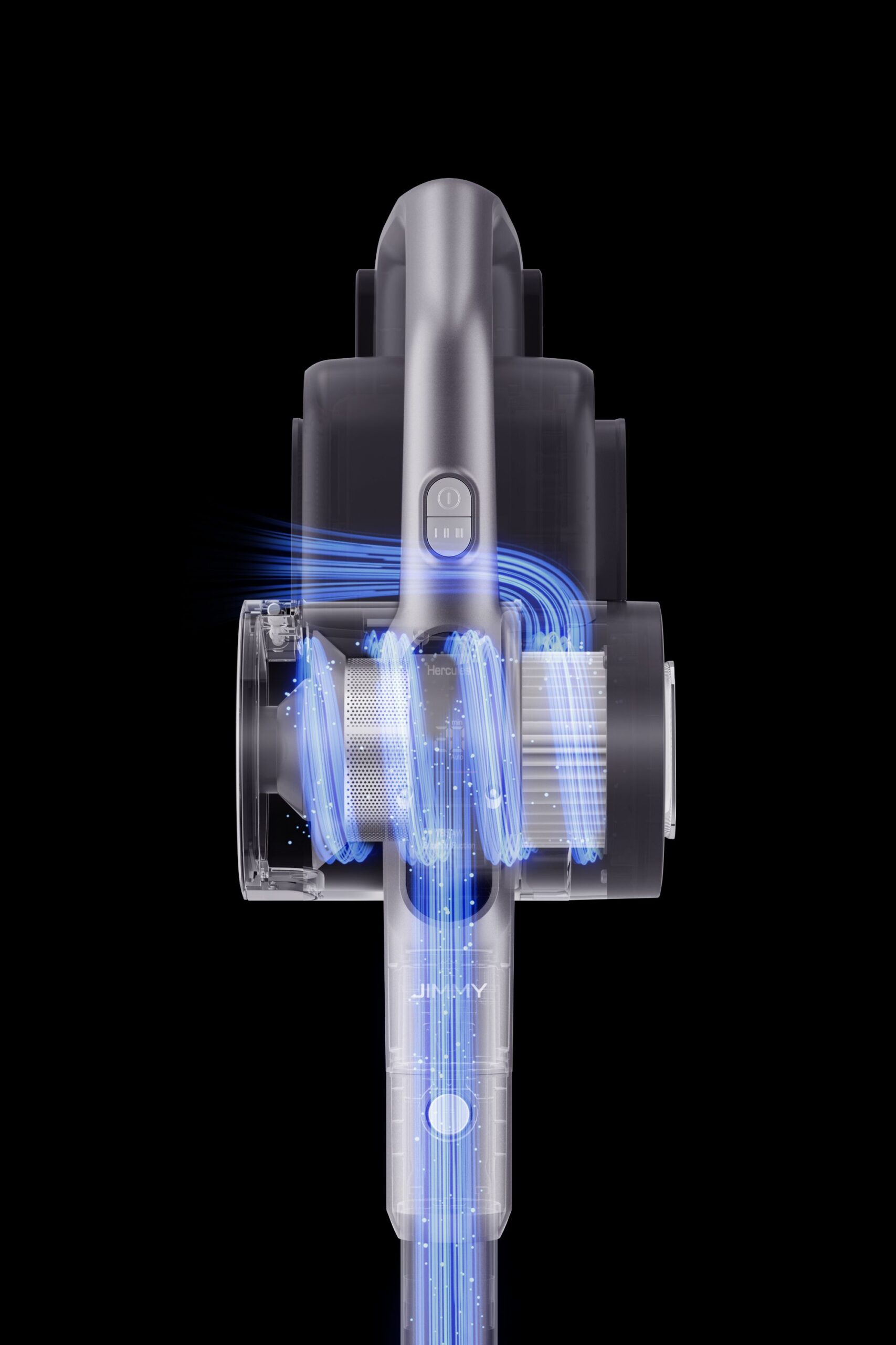 טכנולוגיית הציקלון הכפול מפרידה ביעילות את האבק מהאוויר, ומפחיתה אובדן עוצמת יניקה. בהשוואה לריבוי ציקלונים, הציקלון הכפול של JIMMY יוצר פחות התנגדות אוויר והופך את השאיבה לעוצמתית יותר.