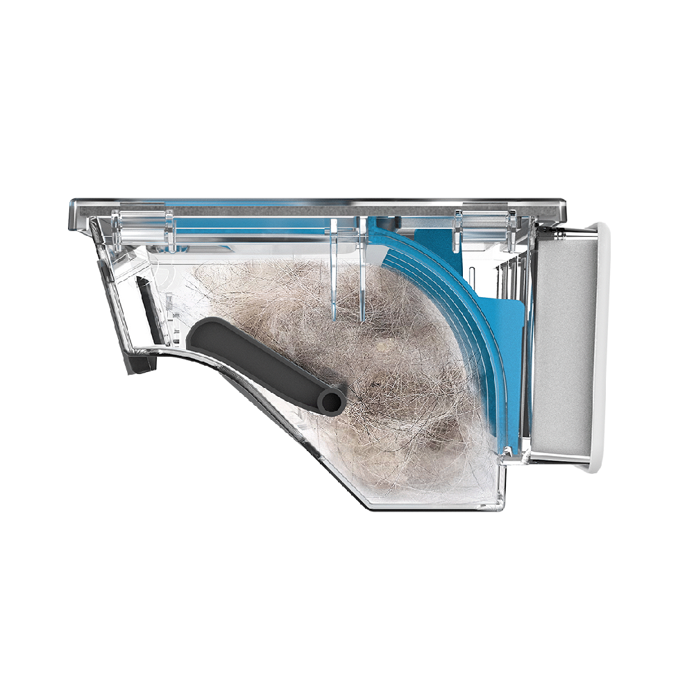 • היחיד בעולם עם “דחסן” במיכל הלכלוך לשימוש מתמשך ללא צורך בטיפול יומיומי או תחנת ריקון.