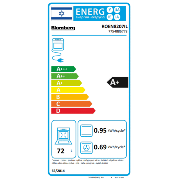 תנור בנוי 72 ליטר Blomberg בלומברג דגם ROEN8207IL
