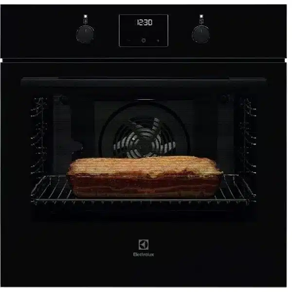 תנור בנוי רב-תכליתי מבית Electrolux, דגם EOH3101K, עם נפח של 72 ליטר ומראה שחור יוקרתי. מתאים לבישול, אפייה, גריל ואפיית פיצה – כל מה שצריך למטבח המודרני, בקלות ובנוחות.