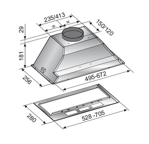 - סירקולציה פנימית ע”י פילטר פחם (מחויב בשילוב צינור שרשורי שיוציא את האדים אל מעל לארונות) או הוצאת אויר חיצונית